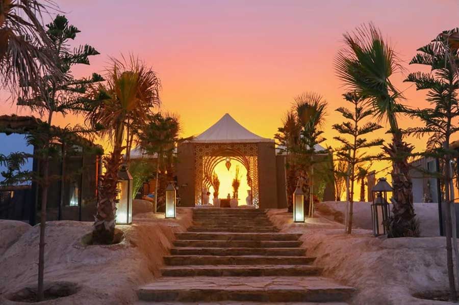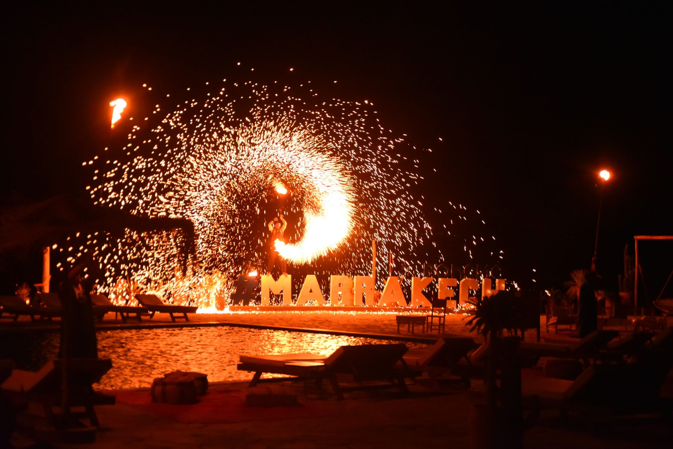 As the evening descends, enjoy a stunning Moroccan dinner show under the twinkling desert stars. Enjoy a delicious array of traditional Moroccan cuisine, including delicious tagines, aromatic couscous, and sweet pastries, expertly prepared by local chefs. Immerse yourself in the rhythms and melodies of vibrant Moroccan music, Arabic dance performances with belly dancers, and fireworks displays showcasing the region’s rich cultural heritage.