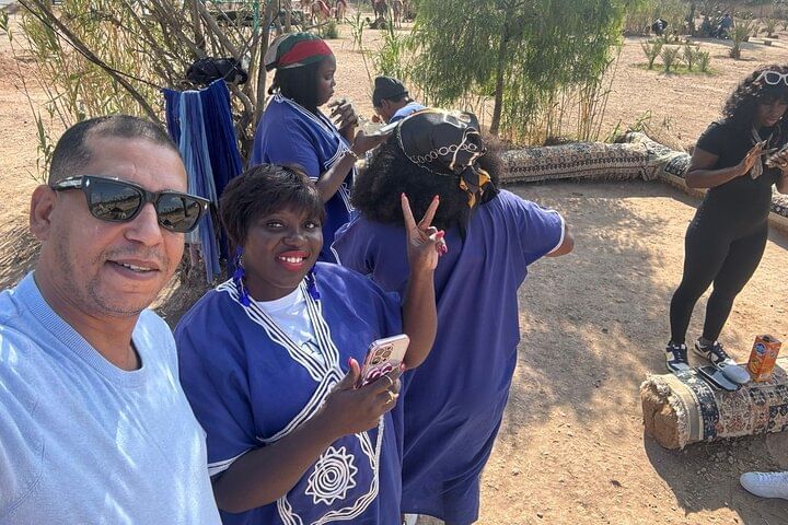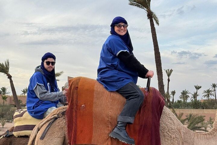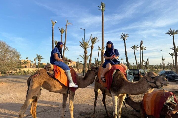 Experience the tranquility of the palm trees near Marrakech with an unforgettable camel ride, offering a peaceful retreat from the hustle and bustle of the city. Follow in the footsteps of ancient Bedouins along historic caravan routes as you explore this beautiful region. Your adventure begins with a friendly driver who will pick you up from your hotel or riad. From there, we’ll set off to the palm trees, where you'll embark on an enchanting camel ride along picturesque paths lined with palm trees and ancient trails. Towards the end of this experience, you’ll have the chance to savor the delicious flavors of mint tea. Capture the essence of Bedouin life with memorable photos while donning traditional attire. After your adventure, your driver will ensure your safe return to your hotel or riad, allowing you to relax and reflect on the magical memories of your camel ride. Enjoy the tranquility and beauty of the Palmeraie region, where every moment promises to be an enriching experience.
